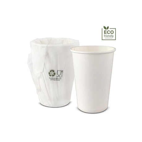 Bicchiere di carta bio in busta materbi biodegradabile confezione da 100 pezzi